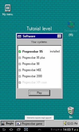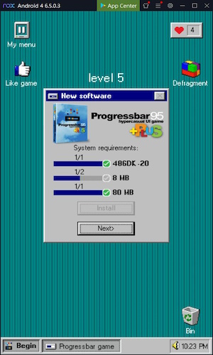 Progressbar95 - забавная игра на ловкость, в которой вы должны погрузиться в систему Windows 95 и стараться догнать строку состояния до 100%.